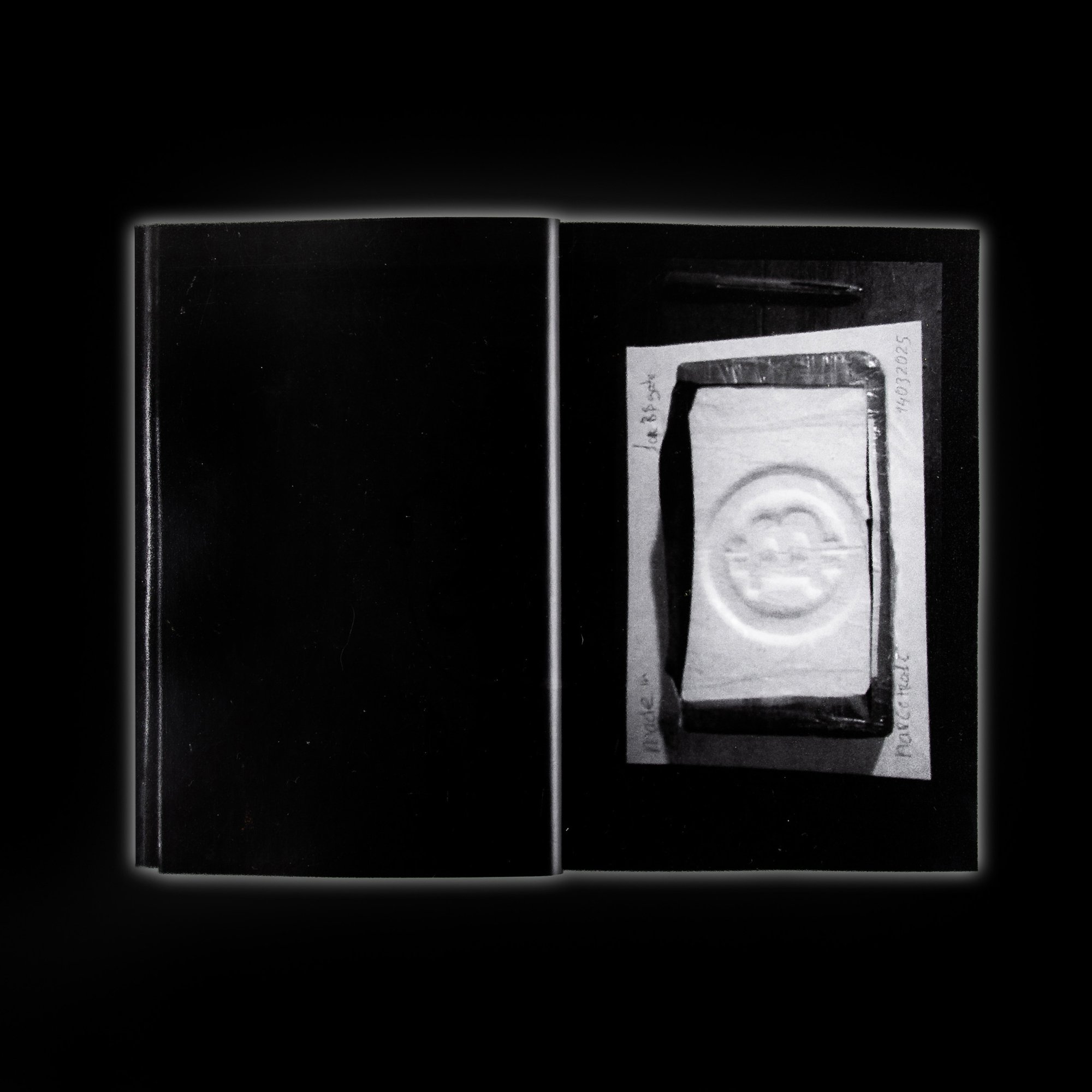 Each image depicts a carefully staged commodity: cocaine bricks stamped with logos, artworks, and watermarks that mimic the conventions of commercial advertising. Through a curated archive and analytical lens, FISH SCALE investigates the formal and semiotic properties of these images, considering how photography is deployed as a functional tool within underground e-commerce. The project is printed in greyscale using low-resolution reproductions, echoing the forensic aesthetics of police archives and law enforcement documentation. In doing so, it reflects on the uneasy intersections between image, evidence, and economy, where visual media becomes both proof and product.